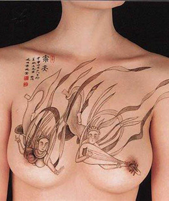 bằng nghệ thuật vẻ hình lên làn da của những người mẫu xinh đẹp.